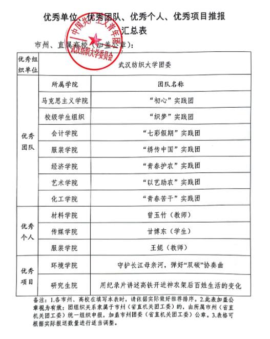 根据团省委《关于开展2022年湖北省大中专学生志愿者暑期文化科技卫生“三下乡”“返家乡”社会实践活动总结和通报工作的通知》要求,经过结项答辩及校团委评审,现将推报结果公示如下: