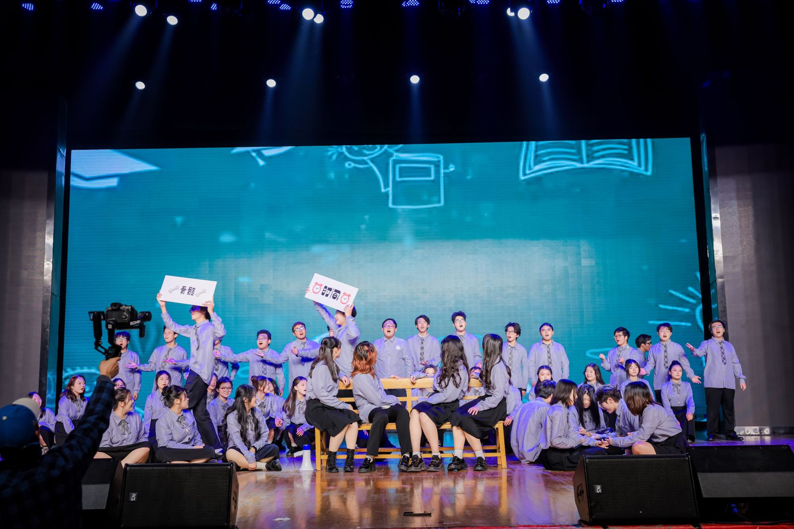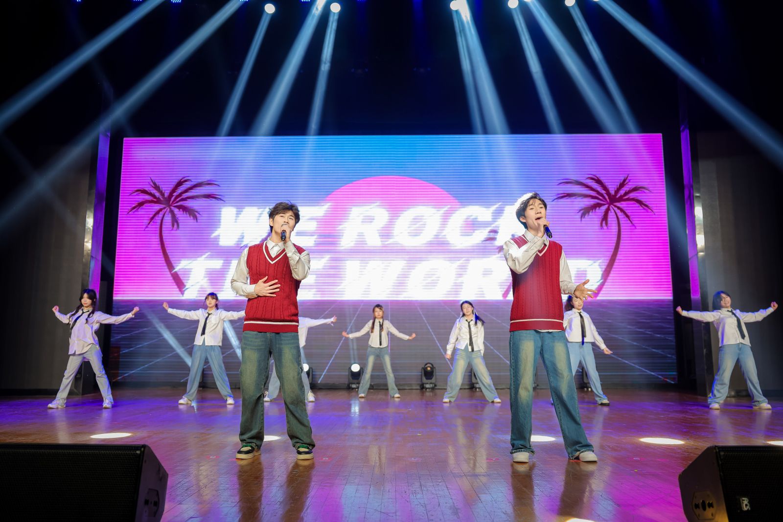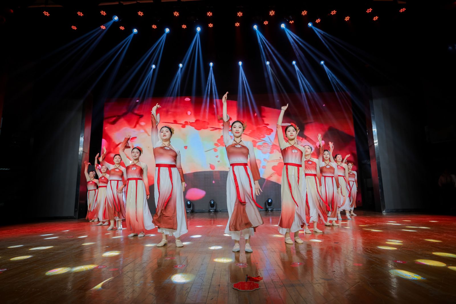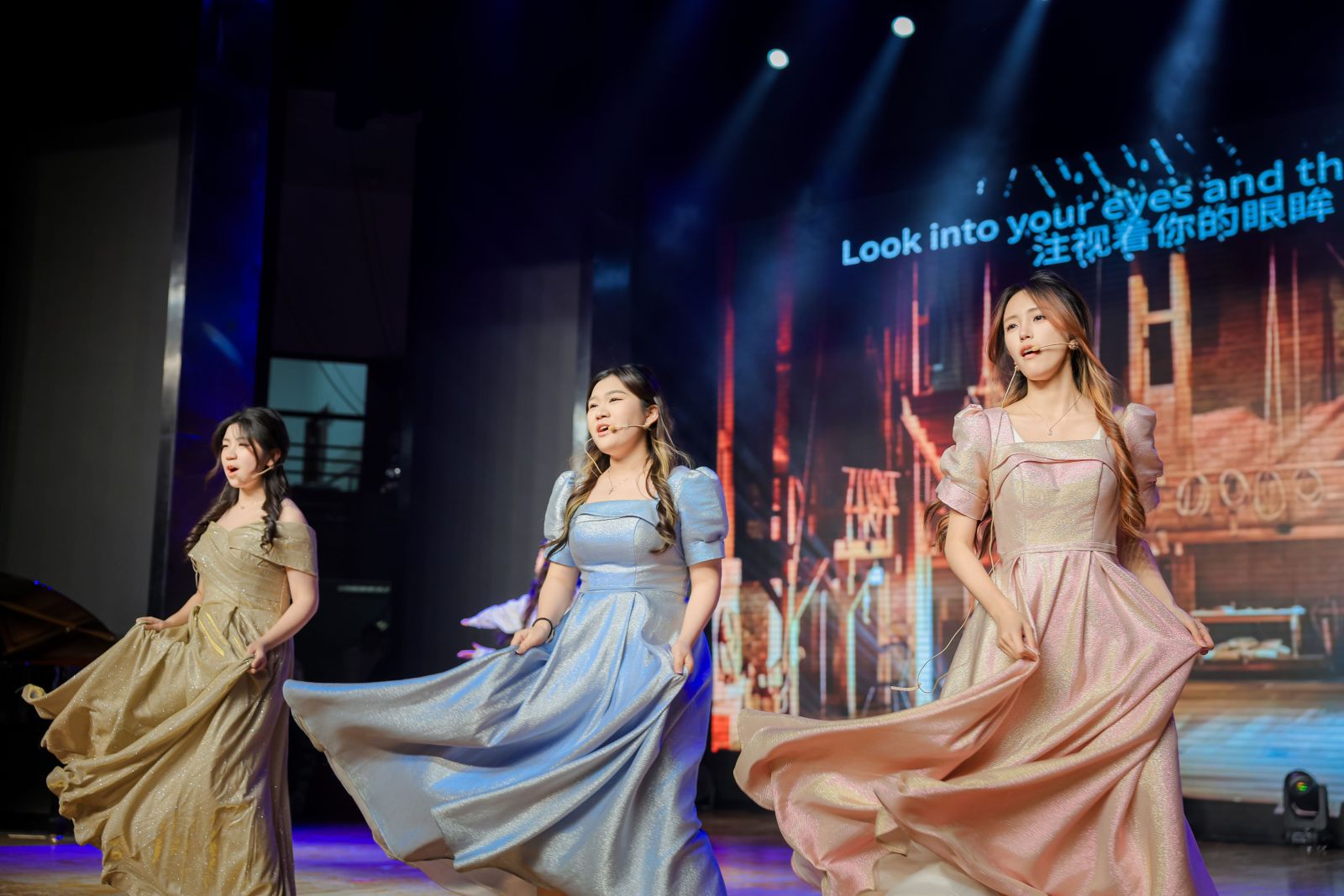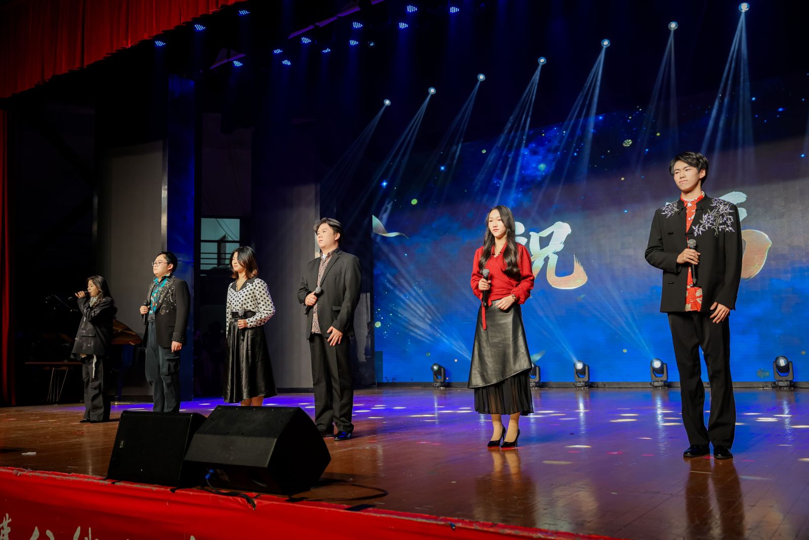 晚会尾声,“经纬乐声”合唱团深情献唱《大梦想家》《不忘初心》,熟悉的旋律引发全场共鸣,师生齐声合唱,在歌声中寄托对梦想的坚持与对未来的向往,为晚会画上圆满句号。