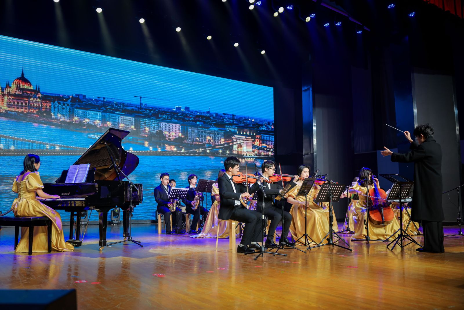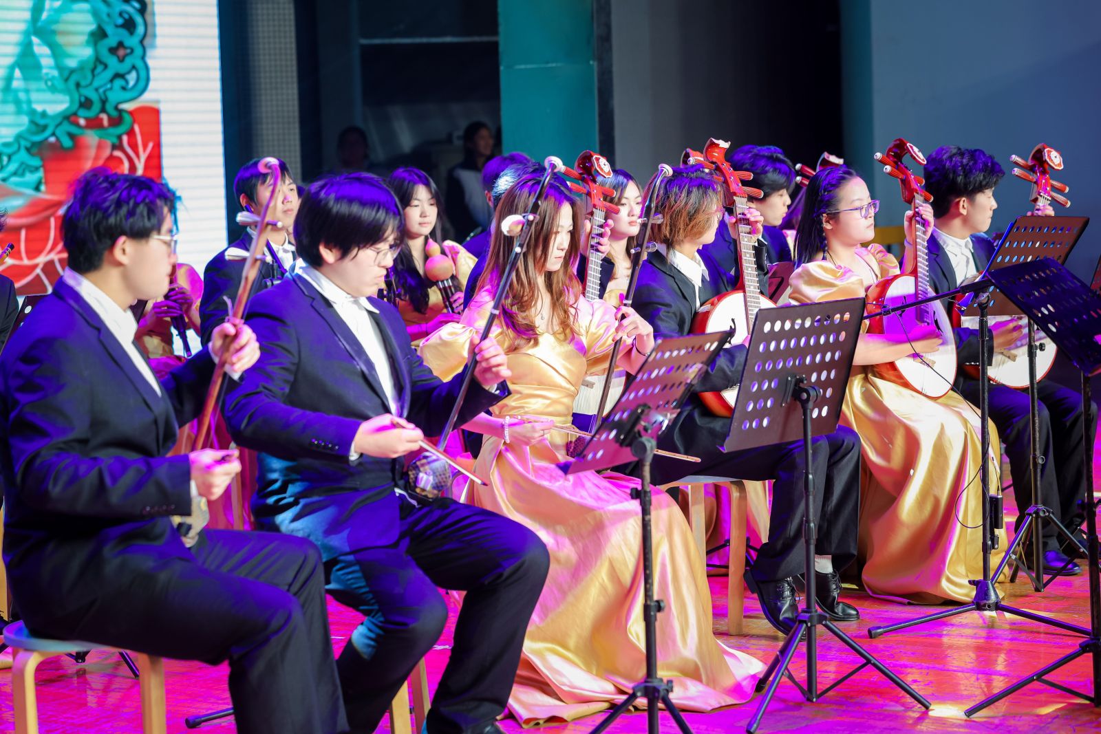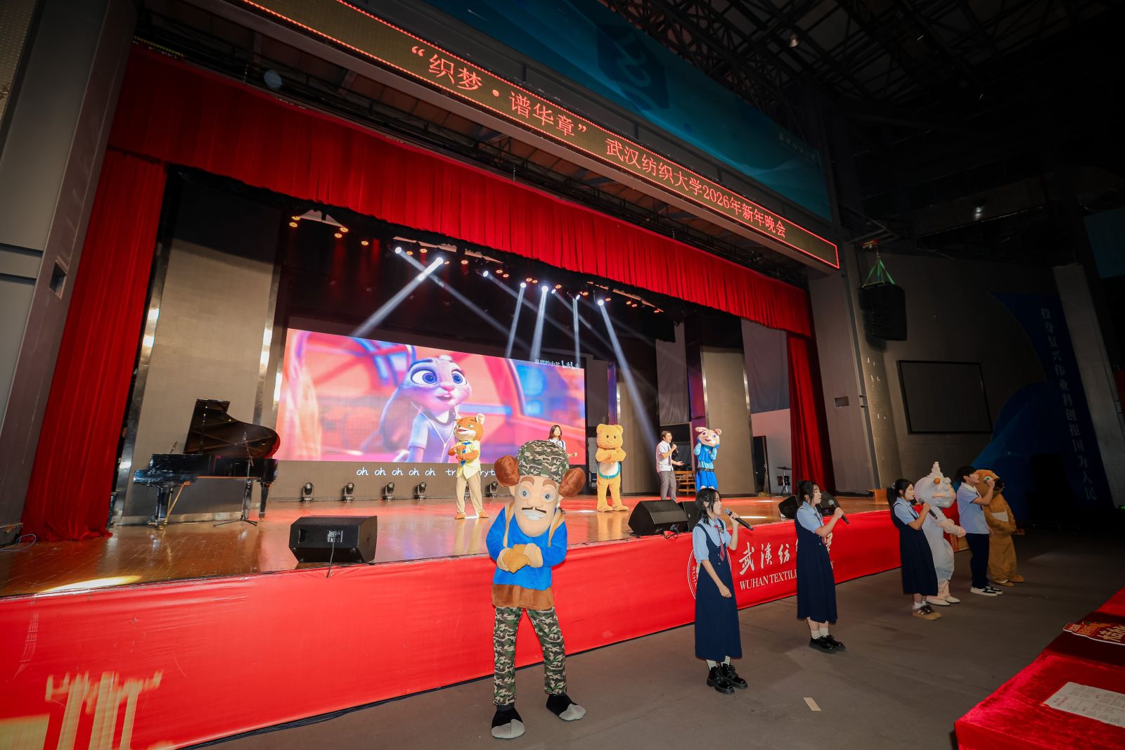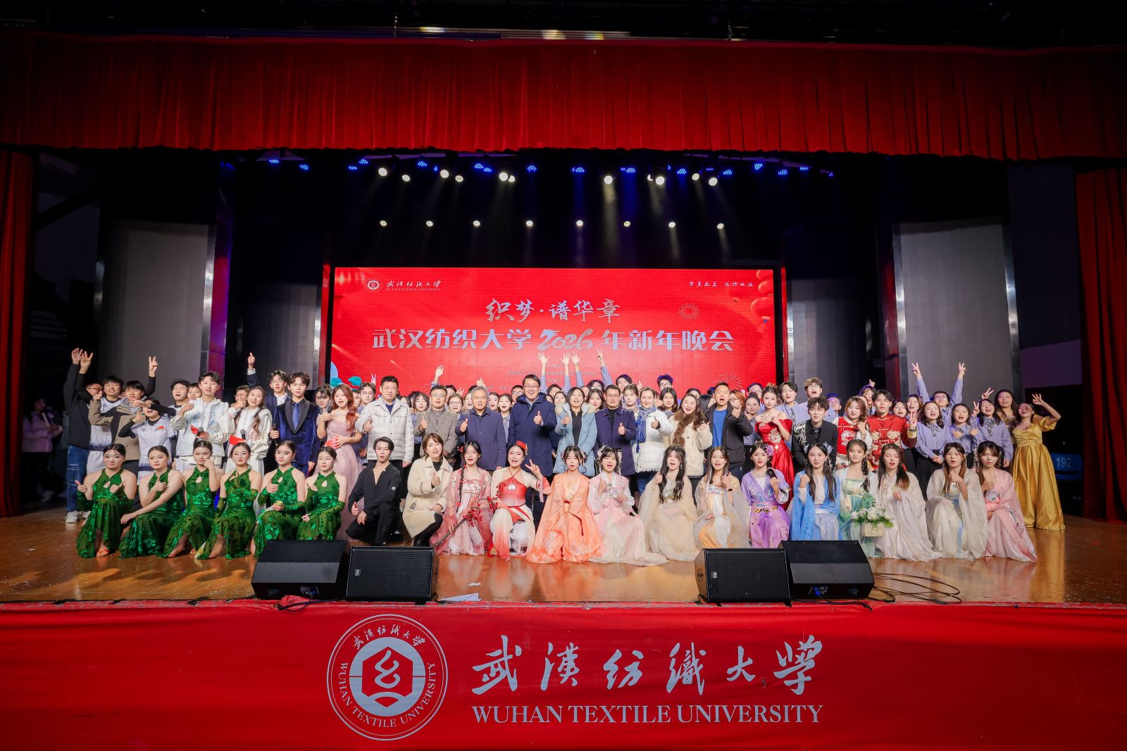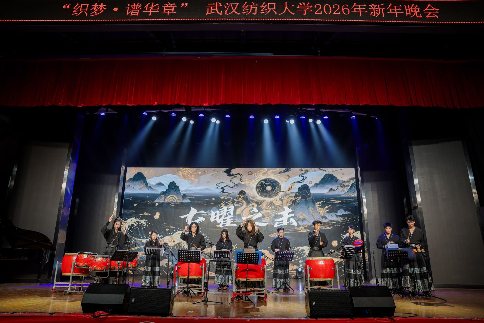 夜幕降临,“织梦·谱华章”2026年新年晚会在阳光校区大学生活动中心演播厅举行,为师生奉献了一场高潮迭起的艺术盛宴。晚会在“织梦”民族交响乐团气势磅礴的《保卫黄河》合奏中拉开序幕,瞬间点燃全场热情。