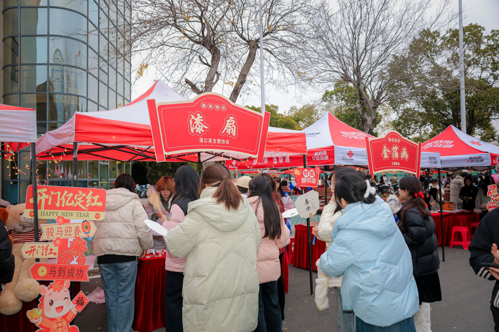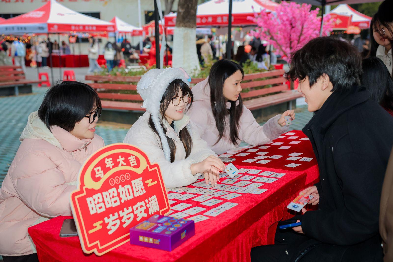 傍晚17时,阳光校区大学生活动中心周边人声鼎沸,新春游园会热闹开启。社团指导中心、学生会及各社团联合设立二十余个特色摊位,百步穿杨、投壶竞技、灯谜竞猜等传统游戏吸引师生踊跃参与。大家通过闯关集券,兑换套圈、非遗体验、砸金蛋等丰富奖励,现场欢声笑语不断,洋溢着跨年的喜悦与活力。