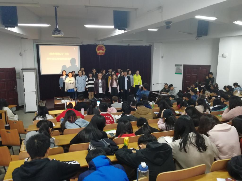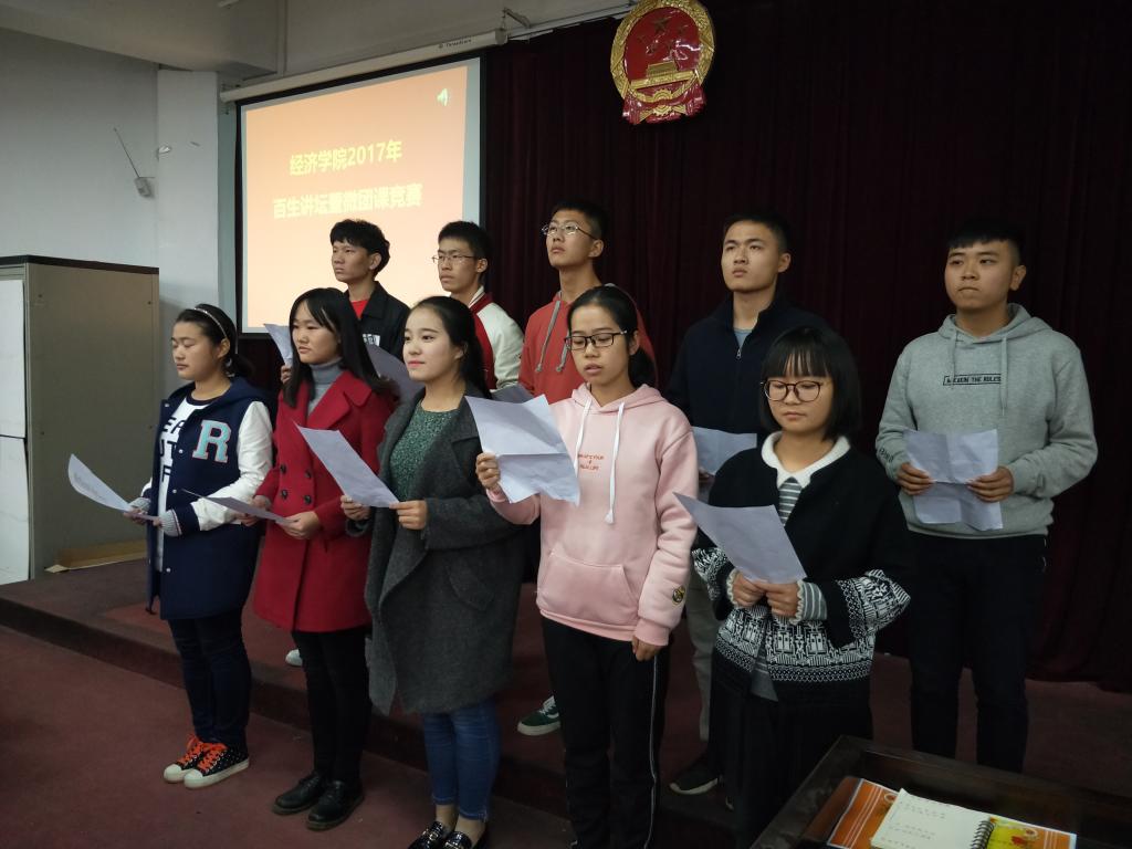 为进一步提升团员素养,创新团课形式,11月12日下午,在阳光校区07-T301教室,经济学院组织开展了第三期百生讲坛暨微团课竞赛活动。2017级辅导员黄俊鹏、学生会常务副秘长郭文璐、学生会副主席徐俊、张文娟、柳厚一等代表出席活动并担任评委。