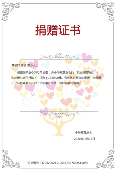 在谈到为何做出这样的善举时,来自四川西昌凉山州的蒙古族女孩蒋涵表示:“我的父亲也是一名疫情抗击一线的基层工作人员,我们这里疫情不算严重,父亲的工作都非常辛苦。可以想象身在武汉抗击一线的医务工作者和工作人员承担着怎样的巨大压力。1650元是我上学期获助的国家助学金金额,我希望能将国家对贫困学子的这份爱传递出去,为武汉抗击疫情尽一份力量。”